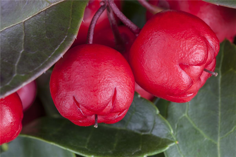 Die Scheinbeere ist im Herbst und Winter eine wahre Bereicherung für den Garten. Mit ihren roten Beeren und dem immergrünen Laub sorgt sie für Farbkleckse im grauer werdenden Garten. Als Bodendecker eignet sie sich besonders gut. Sie breitet sich gut aus und bildet im Beet einen strahlenden grün-roten Teppich. Aber auch im Kübel auf dem Balkon oder auf der Terrasse macht die zu den Heidekrautgewächsen gehörende Pflanze eine gute Figur.