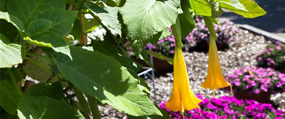 Dann gibt es noch die laubabwerfenden Kübelpflanzen wie zum Beispiel die Fuchsie oder die Engelstrompete. Will man diese dunkel überwintern, müssen auch die Temperaturen niedrig sein, da sie sonst lange „Geistertriebe“ bilden. Ideal ist es, sie vor dem Winterquartier zu beschneiden. Im Winterquartier sollte man darauf achten, dass durch die Fenster möglichst viel Licht hereinkommen kann. Regelmäßiges Lüften ist ebenfalls zu empfehlen, denn es erhöht die Luftfeuchtigkeit. Geht dies nicht, kann man auch eine Wasserschale aufstellen.
