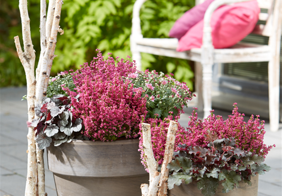Für unsere Pflanzidee HERBST-SPASS IN VIOLETT+PINK benötigen Sie:
