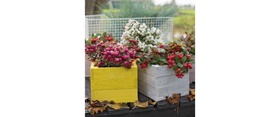 Dank des reichen Fruchtschmuckes gehören die Fruchtmyrte (Pernettya mucronata) und die Scheinbeere (Gaultheria procumbens) zu den beliebtesten Pflanzen im Herbst. Die immergrüne Fruchtmyrte beeindruckt mit ihren auffallenden, weißen oder rosa bis rotfarbenen Beeren, die bis in den Winter hinein an den Zweigen hängen bleiben. Die Früchte heben sich deutlich von den grünen Blättern der Pflanze ab und bilden somit einen hübschen, farb-lichen Kontrast. Die etwa bis 60 cm hoch werdende Pflanze bevorzugt einen sauren Boden.