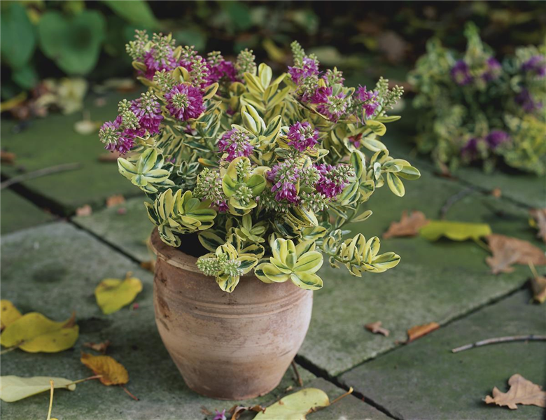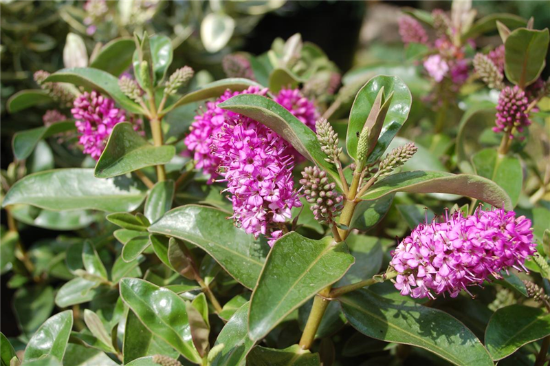 Die Strauchveronika (Hebe) gehört zu den beliebtesten spätsommerlichen Blühpflanzen. Bei einer Wuchshöhe und –breite von 40 – 60 Zentimetern, blüht die Strauchveronika in den Farben Violett, Blau, Rot oder Weiß von Juli bis Oktober.