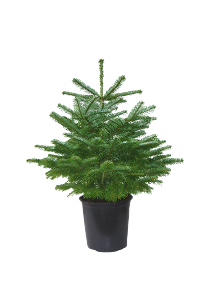 Mit einem geraden Stamm und einem gleichmäßigen Aufbau ist die Nordmanntanne (Abies nordmanniana) ein beliebter Weihnachtsbaum. Ihre Nadeln sind zwar sehr starr, im Gegensatz zu vielen Kiefergewächsen (Pinus) stechen sie aber nicht. Zudem verströmen sie einen angenehm harzigen Geruch. Mit einer Höhe von ca. 80 bis 90 cm können Sie mit ihr Ihren Außenbereich weihnachtlich schmücken.