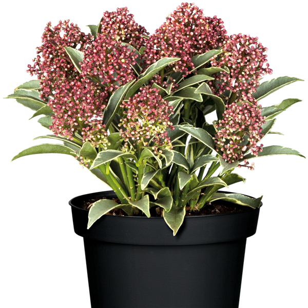 Die Japanische Skimmie (Skimmia japonica) gehört definitiv zu den schönsten Winter-schmuckpflanzen. Grüne Blätter und glänzend rötliche Knospen, die sich im Frühjahr weiß öffnen, sorgen im Winter für weihnachtliche Farbakzente. Der Zierstrauch liebt geschützte, halbschattige bis schattige Bereiche. Wird die Skimmie einer direkten Sonneneinstrahlung ausgesetzt, zeigt sie verfärbte und eingerollte Blätter.