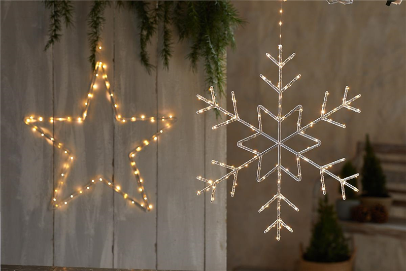 LED-Kerzen können Sie ohne schlechtes Gewissen immer brennen lassen. Sie sind nicht nur für weihnachtliche Laternen verwendbar, sondern erzeugen auch solo eine weihnachtliche Stimmung im Innen- und Außenbereich. Der LED-Stern und die -Schneeflocke sorgen für einen winterlichen Zauber. Mit einer Aufhängung kann man sie im Fenster oder frei auf Balkon und Terrasse schweben lassen. Der Gartenstab mit verschiedenen weihnachtlichen Sprüchen ist ein schönes kleines Gastgebergeschenk (oder zum selber behalten).